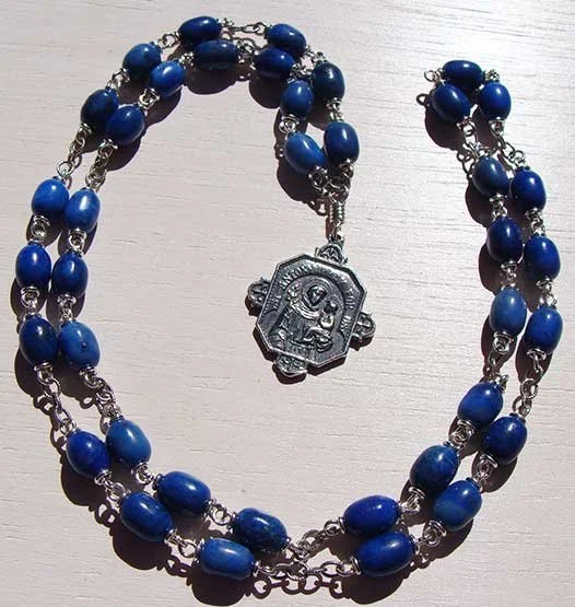St. Anthony end medal + 13 sets of 3 beads (triplets), separated by chain or connectors.